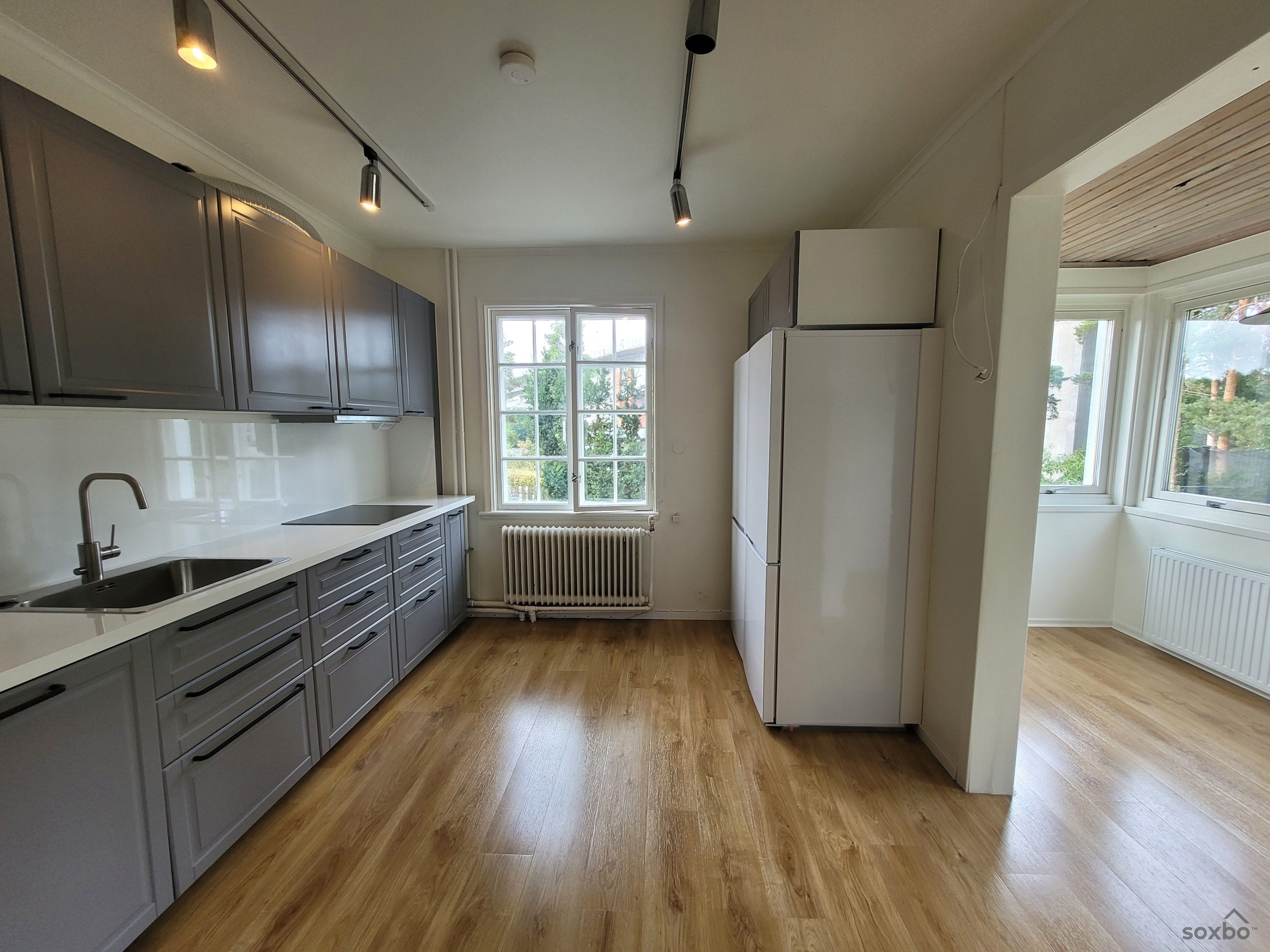 Charmigt och välplanerat hus från 1921 med klassiska detaljer och modern komfort. Huset erbjuder en boarea om 129 m² samt 21 m² biarea och är beläget på en generös tomt om 716 m². Under 2025 har huset genomgått en ytskiktsrenovering och en ny värmepump har installerats, vilket bidrar till både ett fräscht intryck och förbättrad energieffektivitet. Huset präglas av tidstypisk karaktär med vackra trägolv, stora fönsterpartier och tre kaklade kaminer som skapar en varm och trivsam atmosfär. De generösa fönstren ger ett fint ljusinsläpp och bidrar till en ljus och luftig känsla i hela bostaden. Köket är modernt och stilrent (renoverat 2025) med goda arbetsytor och gott om förvaring, vilket gör det både praktiskt och trivsamt för vardagens matlagning. Från huset nås en stor altan samt en inglasad veranda som ger extra utrymme för umgänge och avkoppling under stora delar av året. Här finns gott om plats för middagar, sociala tillställningar eller lugna stunder i en rofylld miljö. Tomten om 716 m² erbjuder gott om utrymme för lek, trädgård eller andra utomhusaktiviteter. Bostaden har dessutom praktiska biytor som ger extra förvaringsmöjligheter och bidrar till en smidig vardag. Fastigheten ligger i ett lugnt och trivsamt område med närhet till natur, grönområden och god service. I närområdet finns skolor, förskolor och mataffärer, vilket gör läget särskilt attraktivt för barnfamiljer. Kommunikationerna är goda med närhet till kollektivtrafik som gör det enkelt att ta sig till centrala delar av staden. Vid kontraktsskrivning tillkommer en administrationsavgift för kreditprövning, kontraktshantering samt Trygghetspaket